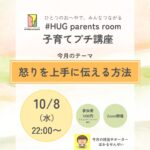 - 【子育てプチ講座】10月8日(水)22:00〜10月の子育てプチ講座は「怒りの伝え方」がテーマ✨ 日時:2025年1… 続きを読む: 【子育てプチ講座】10月8日(水)22:00〜